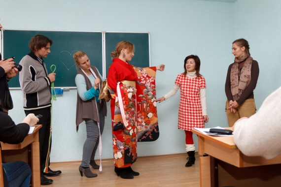 Днями в Тернопільському педуніверситеті ім.В.Гнатюка відбулася зустріч і з менеджером компанії “Сумітомо” пані Еміко Міящіро. Студенти мали можливість поспілкуватися з гостею зі столиці Японії Токіо про японську культуру, ознайомитися із традиційним національним одягом японців та японським автентичним мистецтвом зав΄язування вузлів. Декому із студентів навіть пощастило приміряти справжнє кімоно. Це був саме той випадок, коли краще один раз побачити, отже – фото з зустрічі, повідомляє сайт педуніверситету