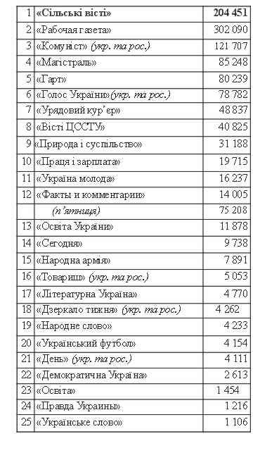 Сьогодні пропонуємо ознайомитись з передплатними тиражами всеукраїнських видань на 2012 рік