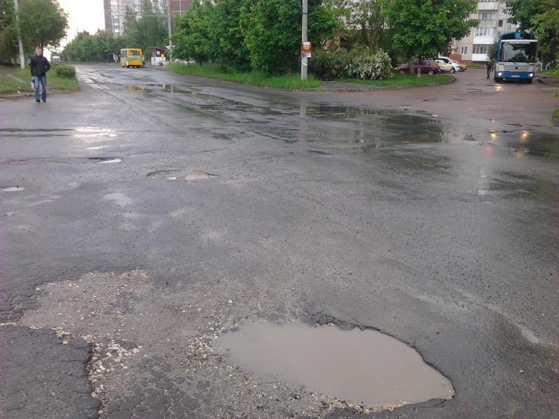 Днями так званий “піскоструй” працював на вулиці Курбаса. Але від обіцянки мера… залишилися ями. На фото чітко видно, що великі вибоїни знаходяться у безпосередній близькості з тими ямами, які вже засипані сумішшю щебеня та смоли.