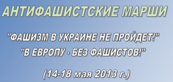 Для тих хто здається логічним питанням – “Навіщо це все?”, роз’яснюється: “Антифашистские марши, митинги под лозунгами “ФАШИЗМ В УКРАИНЕ НЕ ПРОЙДЕТ!”, “В ЕВРОПУ – БЕЗ ФАШИСТОВ!” являются адекватной, ожидаемой реакцией общества на попытки экстремистски настроенных политических сил ВОЗРОДИТЬ В УКРАИНЕ ФАШИЗМ”.