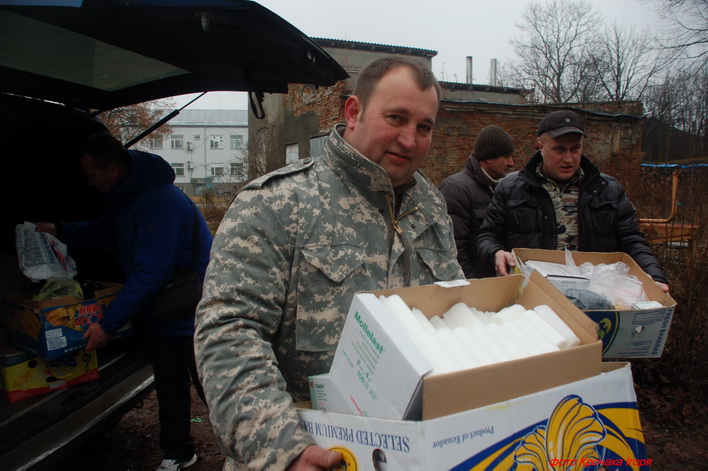 Отож волонтерською группою «Схід і Захід разом» (тернополянин Василь Конько представник Луганщини Едуард Хатмуллін і багато багато ін.) Шумськими волонтерами з самооборони під керівництвом Володимира Каніщева підготовлено до відправки на схід допомогу вагою поверх шість тон. Перечисляти весь спектр категорії і класифікацію спорядження, харчів, обладнання, маскувальних халатів, термобілизни, військового одягу і взуття, медикаментів у короткому повідомлені замітці небуду. Зазначу лише що діточки Васьковецької початкової школи під керівництвом своїх вчителів і бійців самооборони сплели великі білі маскувальні сітки для бронетехніки, як запевнила їхня вчителька Віра Косік хоч важко це було робити маленькими дитячими рученятами, та її учні горді того що допомогли нашим бійцям.