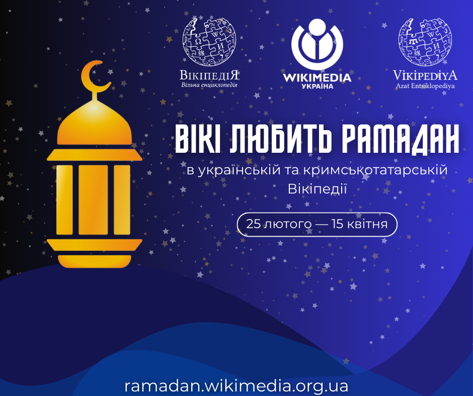 Із 25 лютого до 15 квітня 2025 року у Вікіпедії українською та кримськотатарською вперше відбудеться конкурс написання статей «Вікі любить Рамадан». Мета — збільшити кількість статей про традиції, історію і культуру Рамадану.