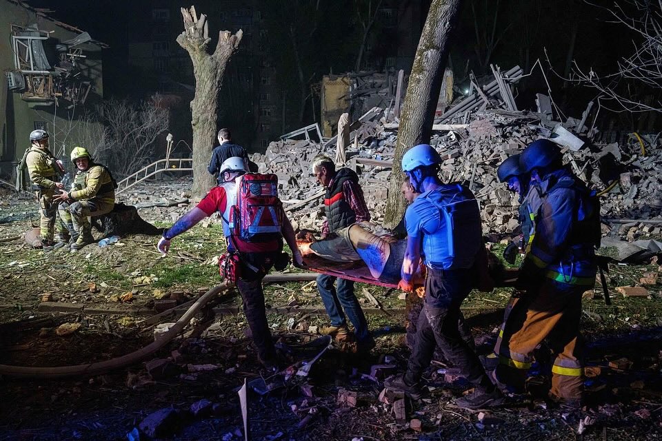 В ніч на 24 квітня Київ зазнав комбінованої атаки ворога. Відомо про девʼятьох загиблих та понад 70 постраждалих, у тому числі 6 дітей і вагітна.