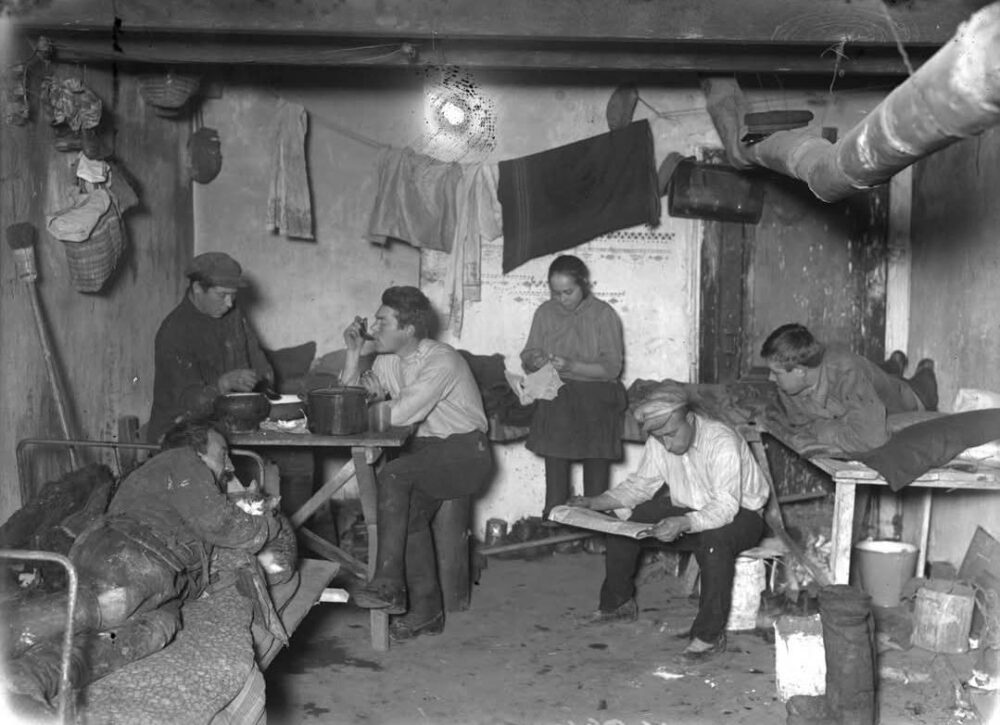 Це 1928 рік, Радянський Союз, кімната в робітничому гуртожитку. Ці люди працюють на якомусь “великому будівництві”. Не житло для себе будують, а якусь елктростанцію або металургійнийкомбінат які мають дати броню для танків.