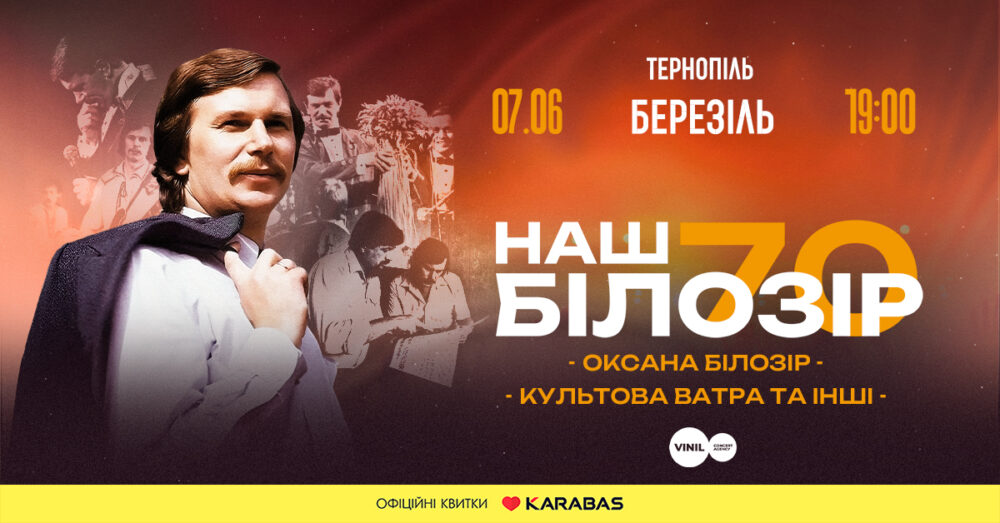 7 червня у тернопільському ПК «Березіль» прозвучать найвідоміші пісні Ігоря Білозіра — композитора, які стали частиною культурної ідентичності українців. Початок о 19:00, зазначають організатори VINIL concert agency.