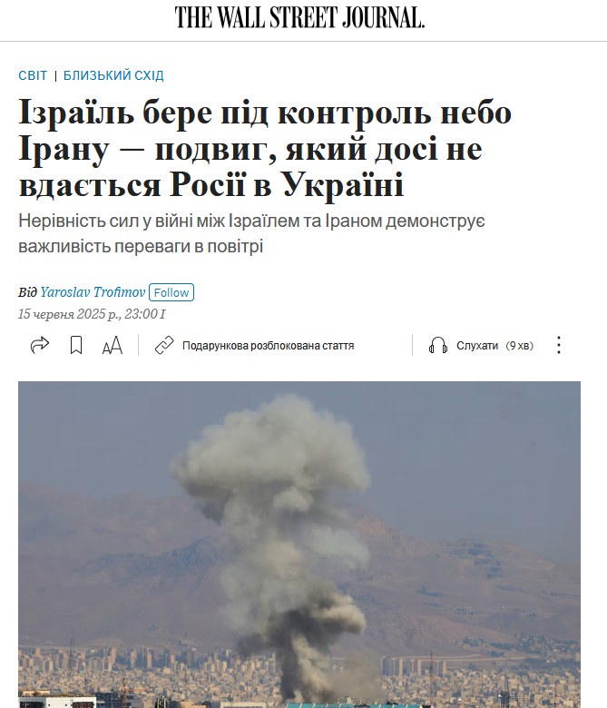 «По суті, Ізраїль зробив з Іраном те, що Росія хотіла зробити з Україною: вони думали, що зможуть здійснити якусь таємну операцію, проникнути в Україну і знищити український режим», — сказав ізраїльський геополітичний аналітик Майкл Горовіц. «Але виявилося, що українське суспільство є стійким і в нього не так легко проникнути, тоді як в Ірані режим настільки непопулярний, що там легко знайти людей, які погодяться співпрацювати з Ізраїлем».