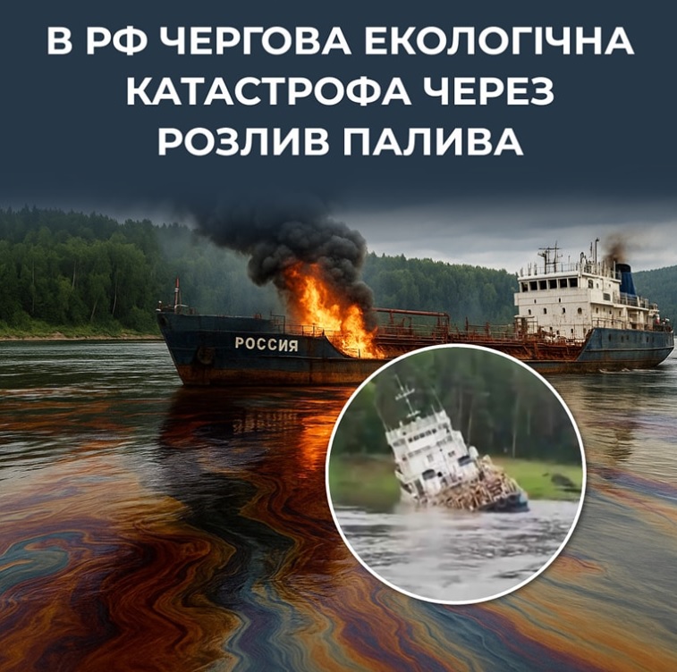 На річці Єнісей у Красноярському краї росії сталася чергова аварія, яка призвела до виливання 30 тонн палива та забруднення 30 км русла річки