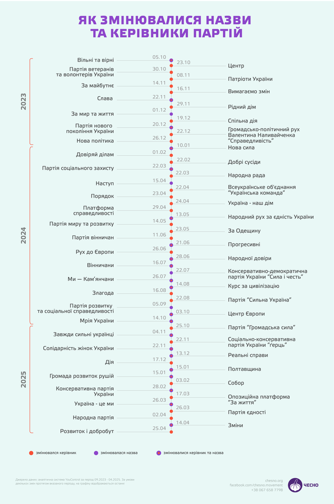Загалом з початку повномасштабного вторгнення щонайменше 78 політичних партій змінили керівника, 39 – назви. У це число входять і партії, повʼязані із згаданим Нечепоруком, проте список ними не обмежується.