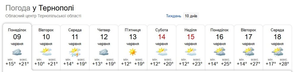 7 червня у Тернополі був перекритий історичний максимум температури повітря 31,6° тепла. 67 років – у 1958 році було зафіксовано 28,7 градусів Цельсія.