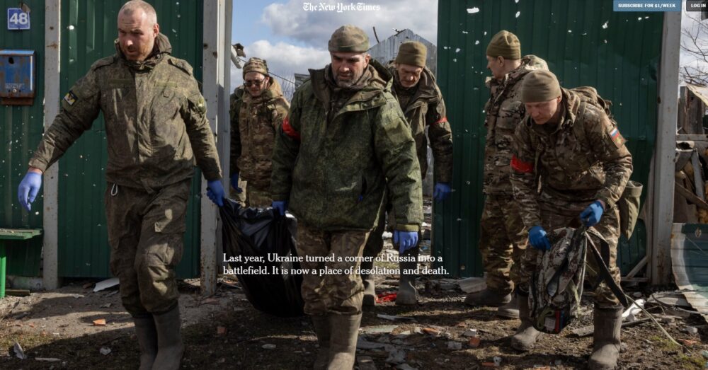 Американське видання The New York Times опублікувало маніпулятивний репортаж із прикордоння курської області росії, у якому розповідає про «спустошення і смерті» після дій українських військових.