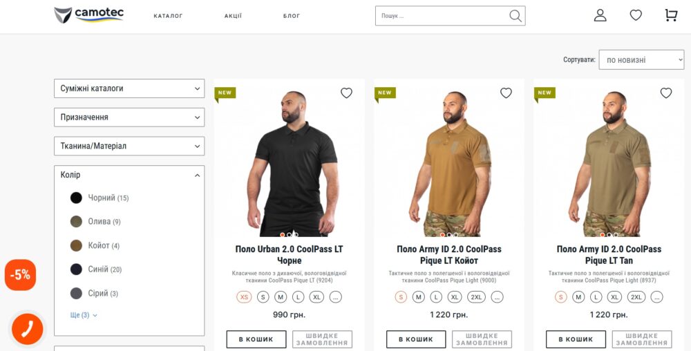 Серед усього асортименту тактичного одягу, тактичне поло camotec вирізняється продуманим дизайном і високою якістю тканини, серед яких також виділяють: