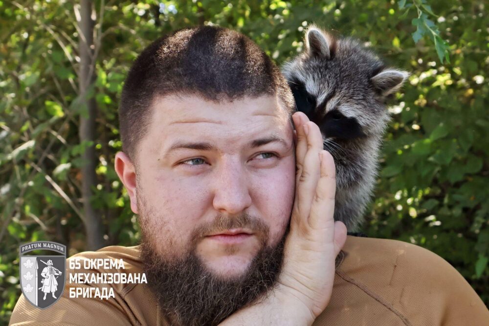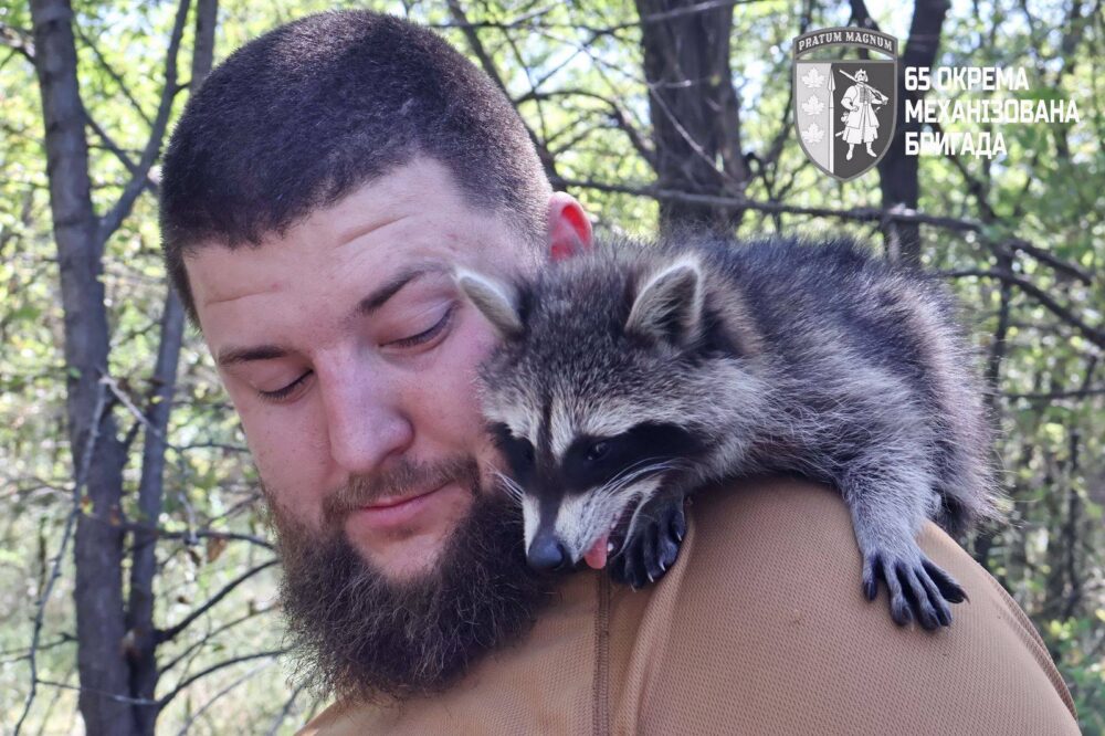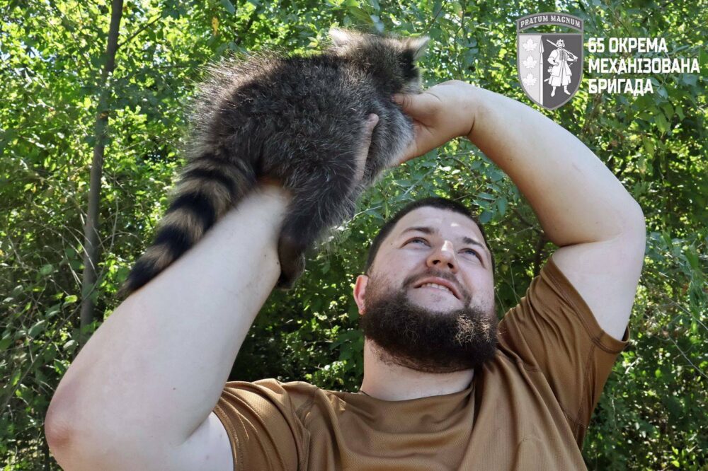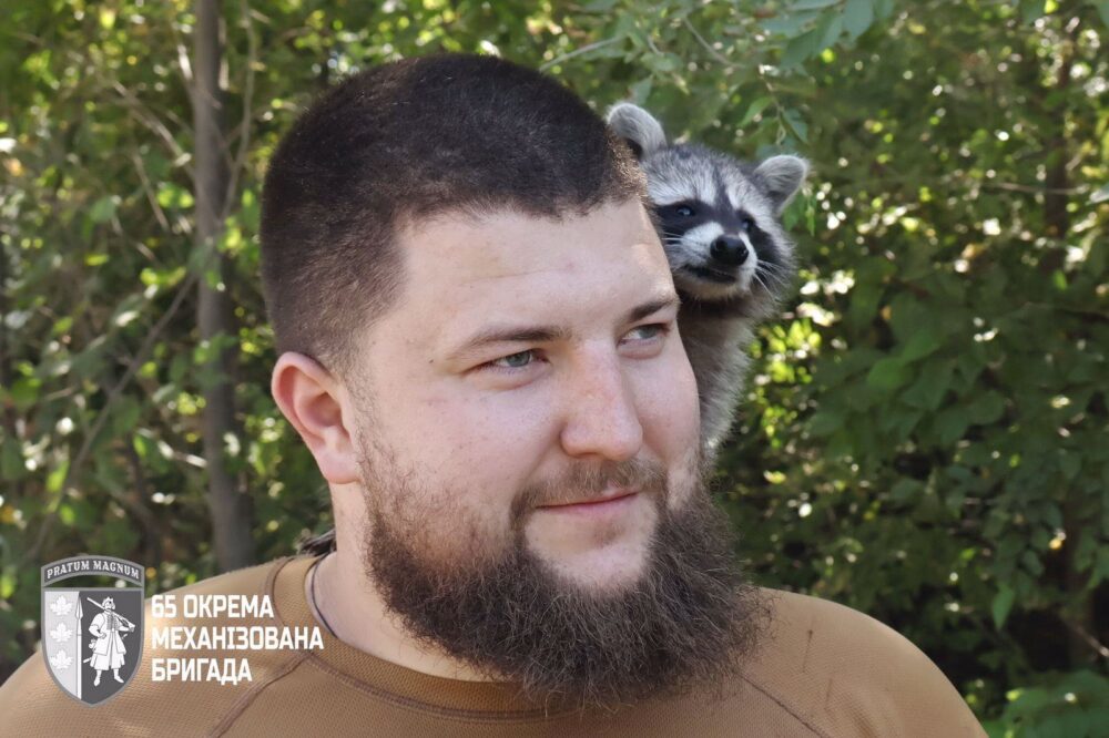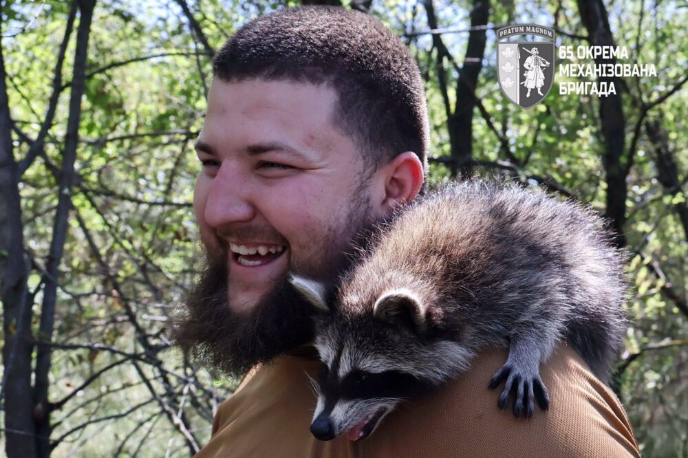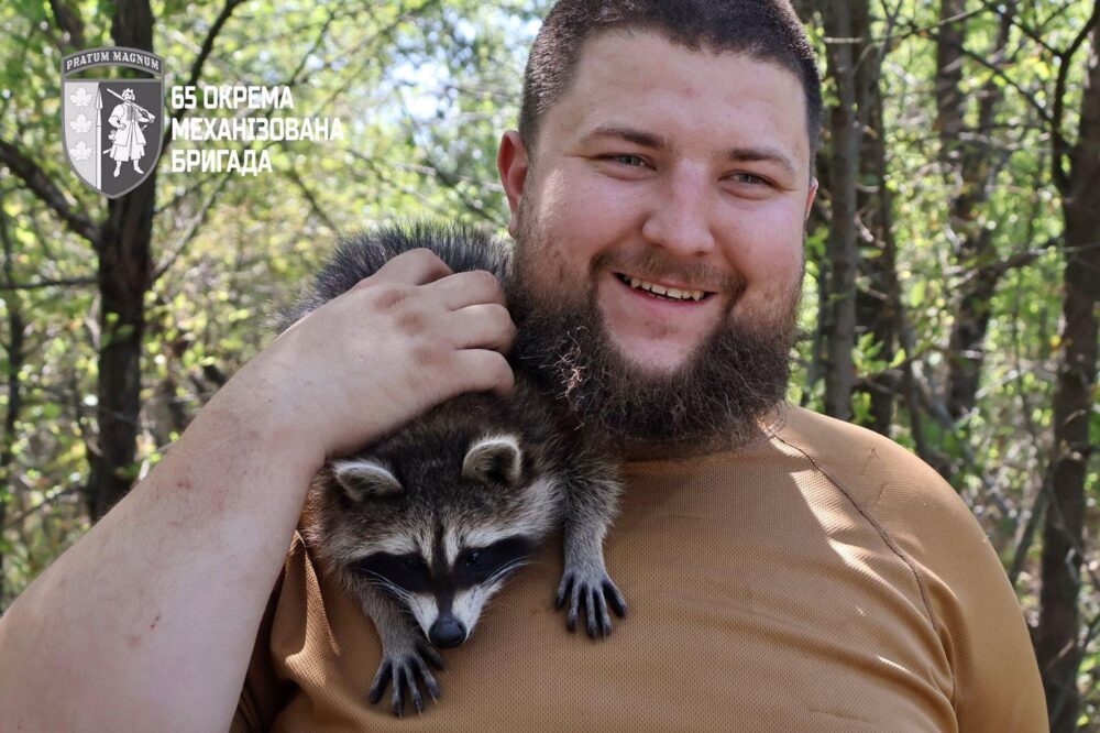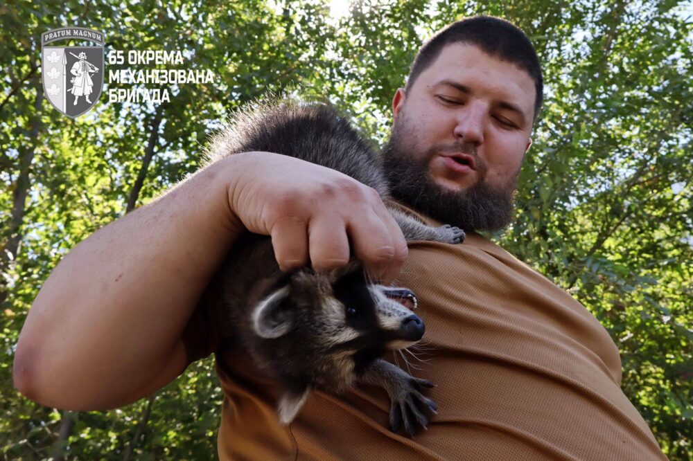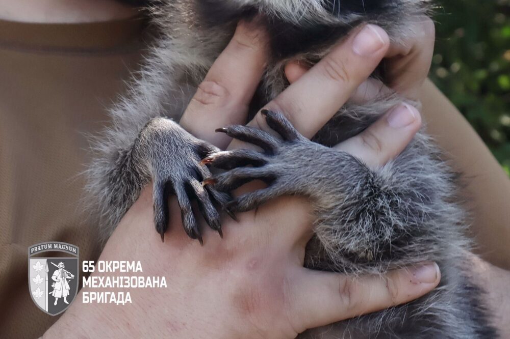 В одному з підрозділів 65 ОМБр ЗСУ “Великий Луг” з’явилася незвичайна вихованка – маленька самка єнота на ім’я Моллі.