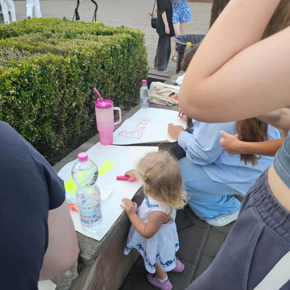 І якщо ще у хлопців по формі, тон був такий досить спокійний, офіційний, то поряд з ними був чоловік не по формі, але який також показав свою ксиву, і от його тон комунікації був, відверто скажу, тиснучий, залякуючий, це знаєте, коли тобі в очі заглядають, нахилившись, тихим голосом говорять, такий дуже кегебістський вайб, типу, “що ви тут робите? а це заборонено”, “а це ваші діти? а скільки їм років?”, ” а де ваш чоловік? на війні? а де служить?”, “а де ви працюєте?”, “а чому ви прийшли? хто вам радив сюди прийти? звідки ви сама приїхали, чи ви місцева?”