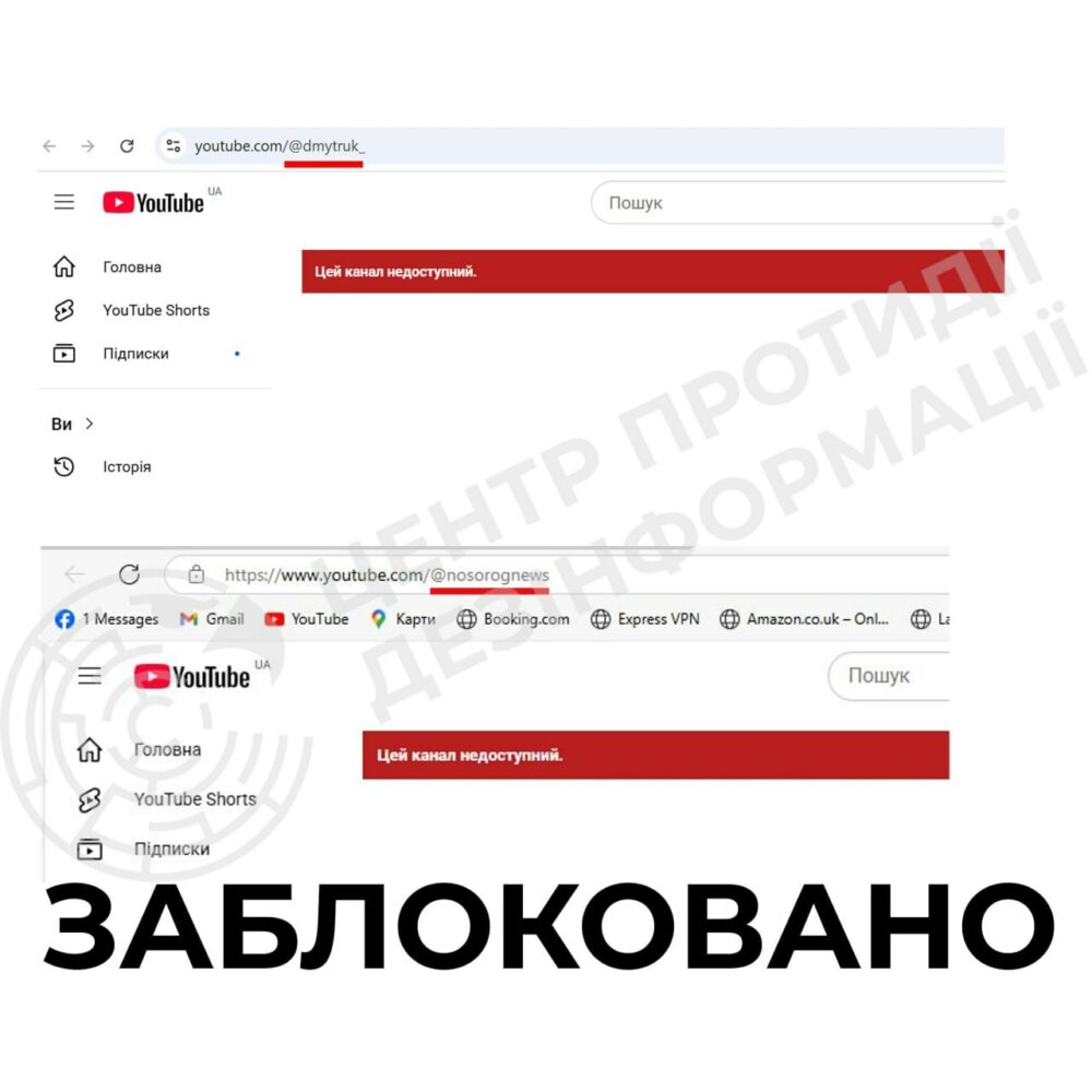 YouTube заблокував на території України ще два канали, які поширювали співзвучну російській пропаганді інформацію. Вони були пов’язані з особами, проти яких запроваджені санкції.