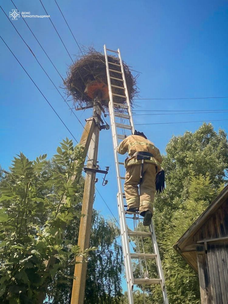 Кожне життя — важливе: на Тернопільщині рятувальники визволили лелеку з пастки на електроопорі