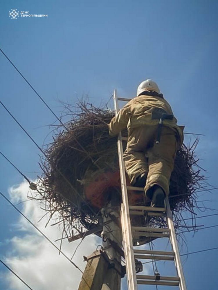 Щоб запобігти ураженню електричним струмом, працівники РЕМ оперативно знеструмили лінію. Після цього один із співробітників ДСНС, використовуючи висувну драбину та діелектричні засоби індивідуального захисту, піднявся до гнізда й обережно визволив птаха.