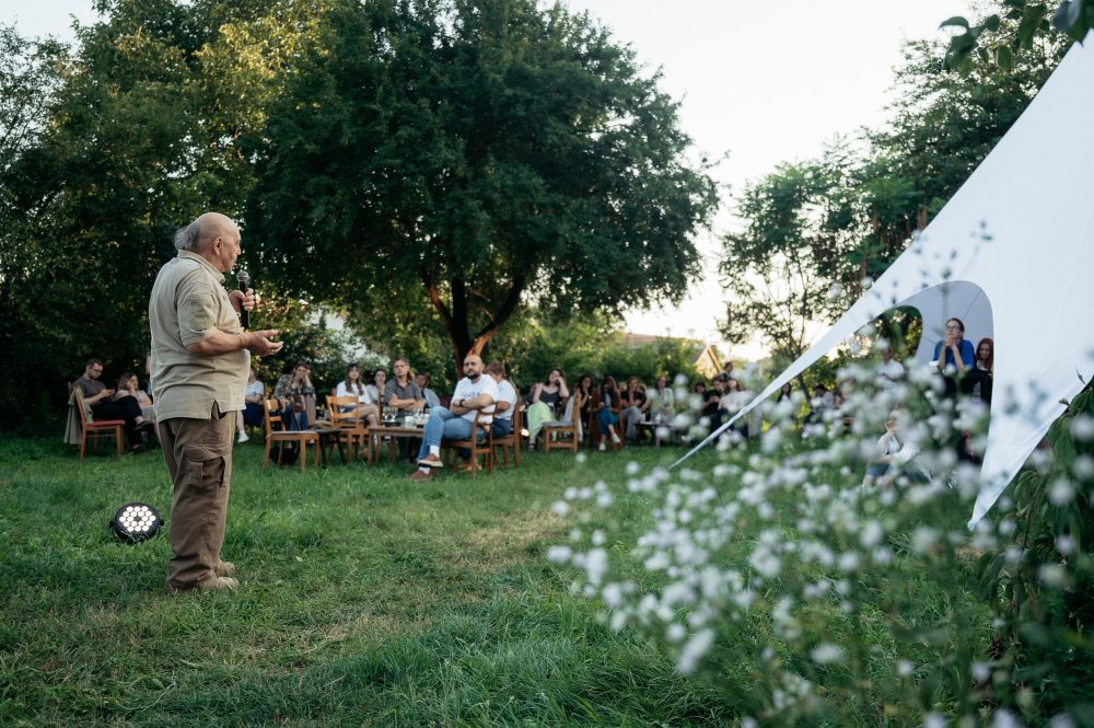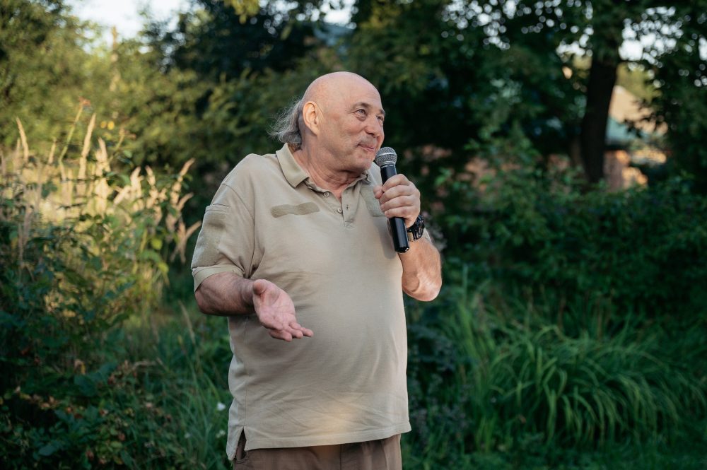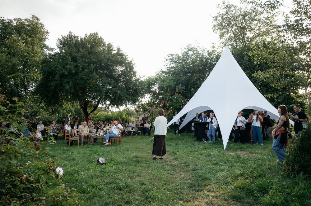 «Сьогодні я розповідаю про мрію, яка стає реальністю. У 2020 ми гуляли з Олегом Покальчуком між деревами цього саду — біля родинного дому Покальчуків — і тоді вперше з’явилась ідея оживити цей простір. Відтоді минуло багато часу. Світ змінився, ми змінилися. Але сьогодні ми усі тут — поміж цих самих дерев. Я не знаю, чи простір уже говорить з вами. Але мені він каже: тут будуть відбуватись неймовірні речі.»