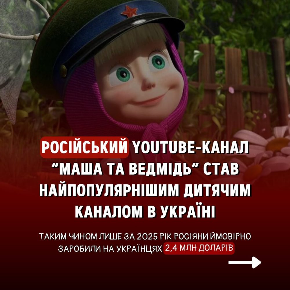«Якщо дуже грубо порахувати й ураховувати те, що діти мультфільми дивляться довго, то середній RPM [ред. — дохід за тисячу показів]«Маші та ведмедя» може бути 3 долари. Таким чином лише за 2025 рік росіяни ймовірно заробили на українських глядачах 2,4 млн доларів. Ось і донати на російську армію. А цей канал існує понад 11 років», — каже Ольга Тищук-Вольська, керівниця Tyshchuk Digital HUB, що займається розвитком брендів у ютубі.