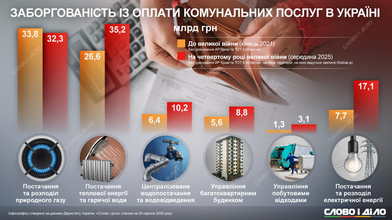 • за постачання теплової енергії та гарячої води — 35,2 млрд грн;