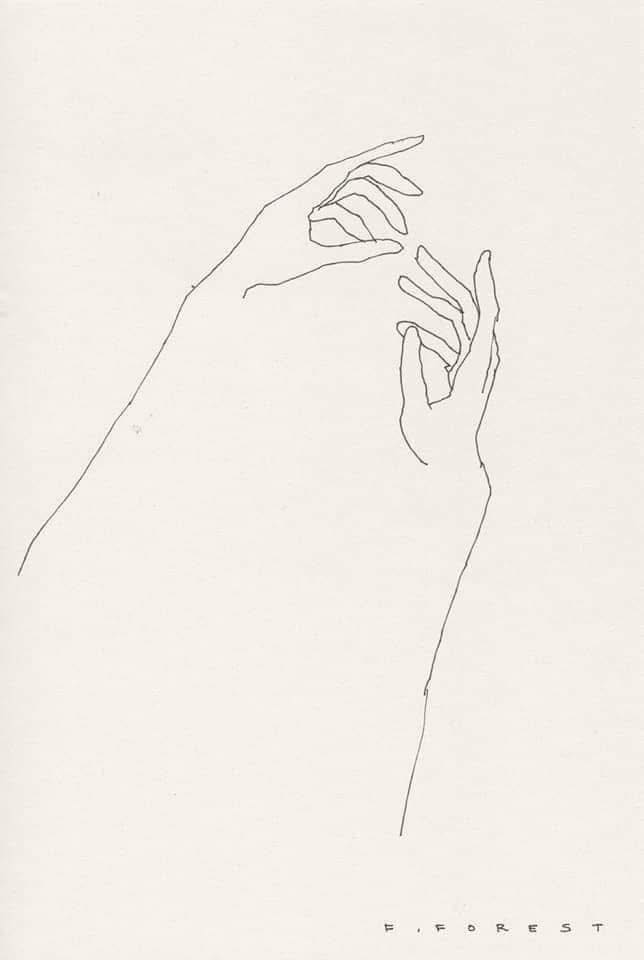 Кожна з них виконана з використанням лише однієї тонкої чорної лінії, зрідка – кількох. Найчастіше Фредерік Форест зображує точені жіночі силуети. Особливу увагу він приділяє рукам – від витончених оголених плечей до тонких зап’ястей та довгих пальців.