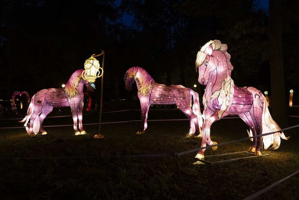 У Парку ліхтарів можна побачити масштабні світлові інсталяції заввишки до семи метрів. Усі вони створені вручну з понад 50 000 ліхтариків, натурального шовку та спеціальних LED-ламп.