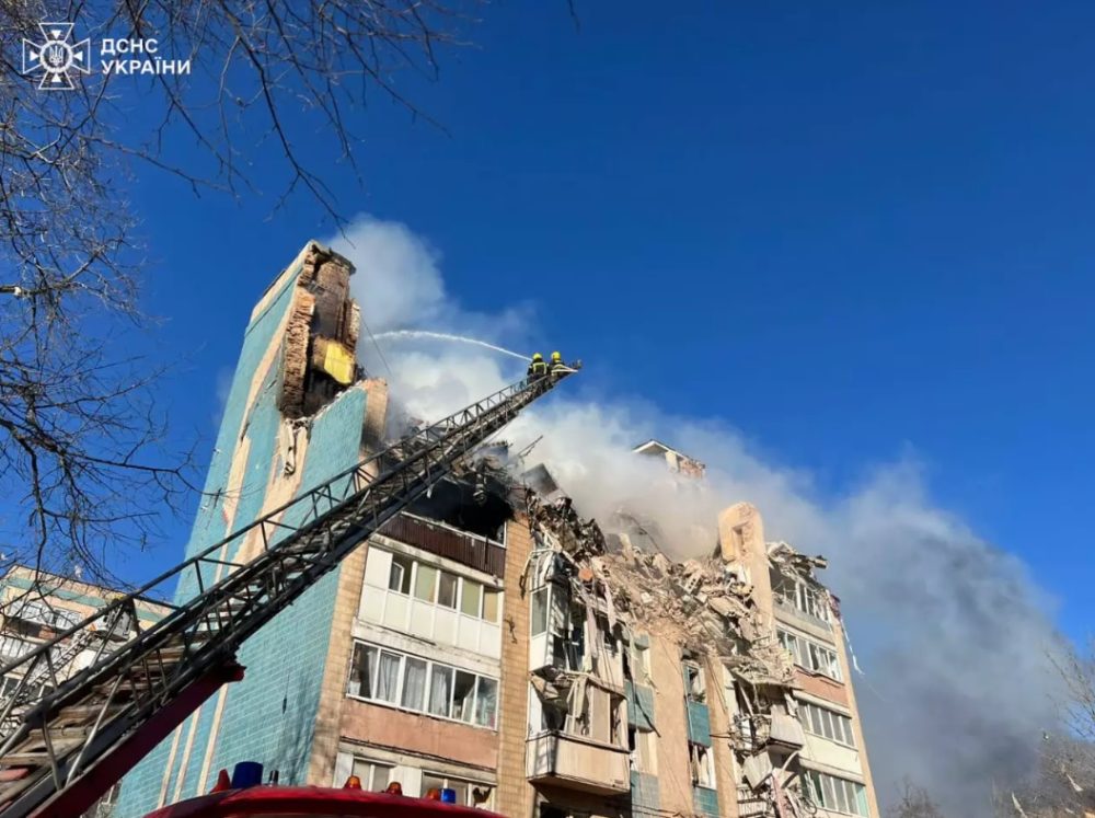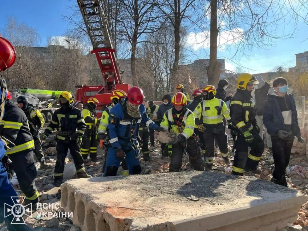 У Тернополі внаслідок обстрілу російською ракетою зруйновано багатоповерховий будинок.