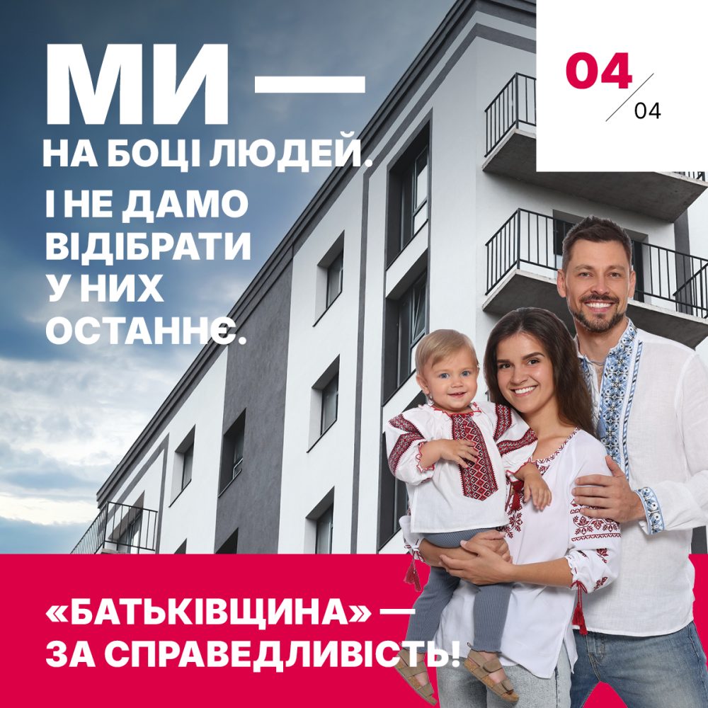 «Батьківщина» наполягає: у країні, що воює, жодна родина не може втратити даху над головою через борги. Захист людей і їхнього права на житло має бути пріоритетом державної політики.