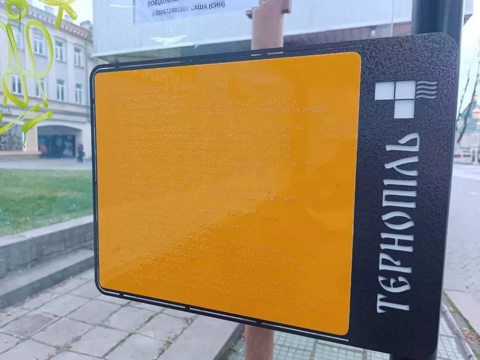 У Тернополі з’явилися таблички з шрифтом Брайля, які коштують шалених грошей.