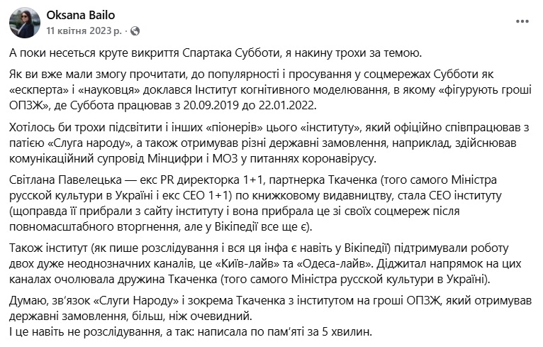 Спільний бізнес (видавництво) з колишнім гендиректором «Плюсів» та колишнім міністром (русской) культури в Україні Ткаченком (який захищав памʼятники пушкіним-суворовим) — це про інститут репутації.