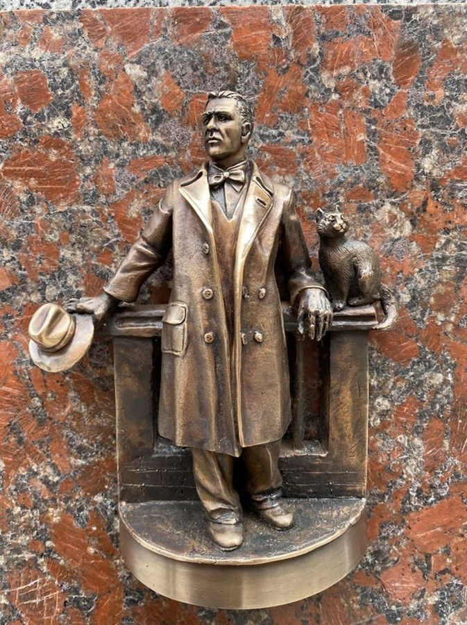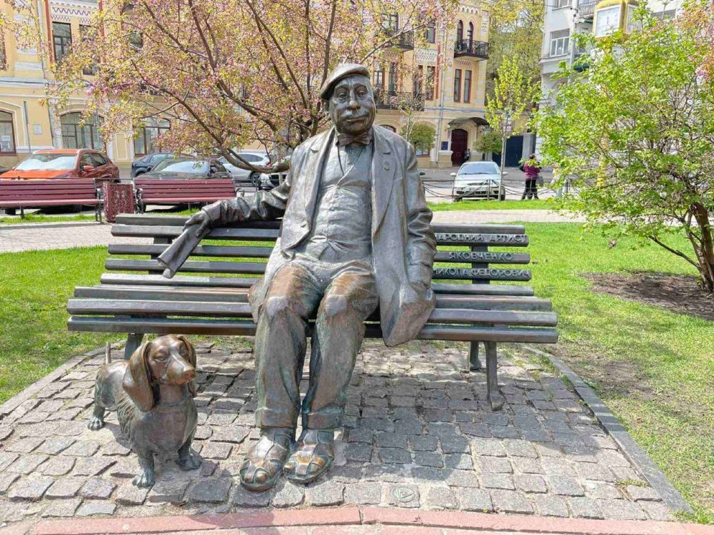 Розглянемо на прикладі двох схожих пам’ятників – Миколі Яковченку у сквері Франка перед однойменним театром і того самого Булгакова, за якого так вчепились (хоча до 2007 року, коли його поставили, всім було плюс-мінус похуй на його відсутність). Говорити будемо виключно про те, як вони вписані в заданий простір і який мають від цього вайб, а не про мистецьку цінність.