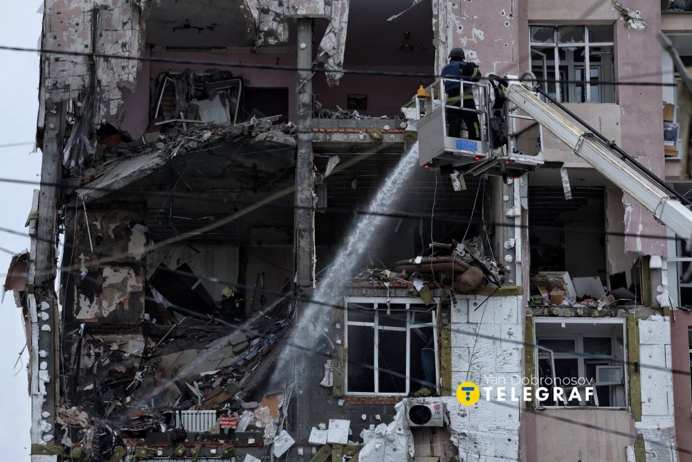 Під завалами одного з них рятувальники шукають людину. У деяких районах столиці та області відсутнє електропостачання, опалення.