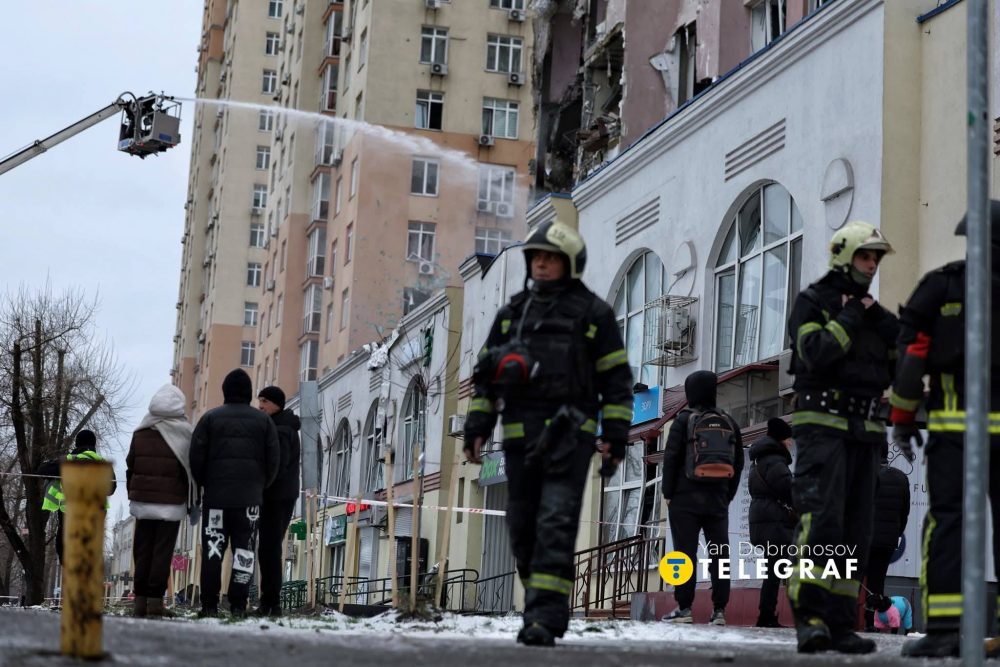 Під завалами одного з них рятувальники шукають людину. У деяких районах столиці та області відсутнє електропостачання, опалення.