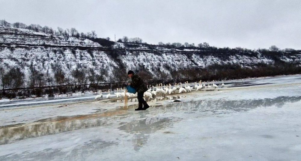 На невеликих латках Дністра , вільних від криги , зимують одні з найкрасивіших птахів – лебеді -шипуни🦢.