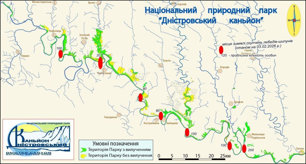 Небайдужі жителі прибережних сіл підтримують їх у цю важку пору. ❗Використовуючи інформацію надану працівниками Парку, а також зібрану з повідомлень у мережі Facebook, складено карту локалізації великих зимових скупчень лебедів. 📢❗Звертаємось з проханням до всіх, хто має інформацію про групи зимуючих лебедів допомогти з наповненням карти. Це потрібно для того щоб мати загальну картину цього явища.