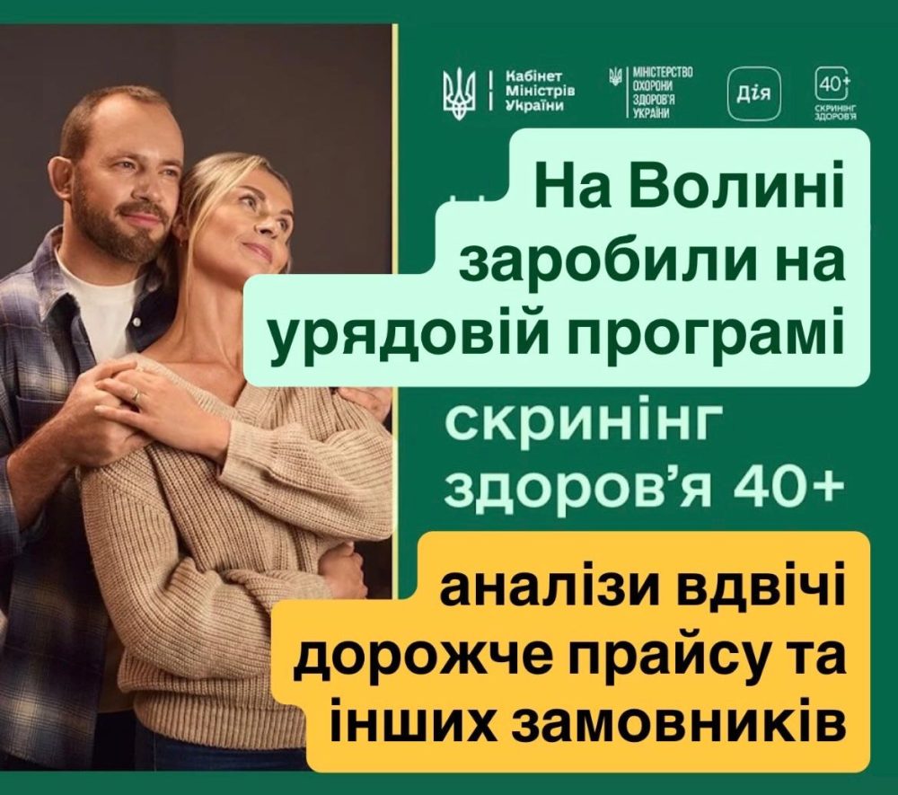 В селищі Іваничі на Волині замовили скринінг здоров’я 40+ за 6,39 млн грн. Це в рамках урядової програми, коли держава через «Дію» спонсорує ряд медичних аналізів людям у віці 40+, аби вони могли виявити якісь хвороби ще на зародковій стадії. Людям мають давати 2 тисячі гривень, які вони можуть витратити лише на ці аналізи.