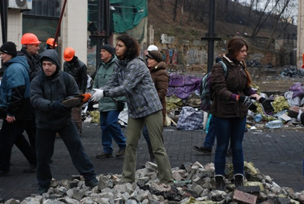 Після успішного захоплення близько 16 години барикади на вулиці Грушевського, в районі Стадіону, «беркутівці» зібралися на Європейській площі та вулиці Трьохсвятительській, оточивши Український дім, зайнятий протестувальниками. Солдати ВВ зайняли і за допомоги комунальних службі МНС розтягнули барикаду на початку вулиці Хрещатик і підготувались до штурму барикади коло профспілок.