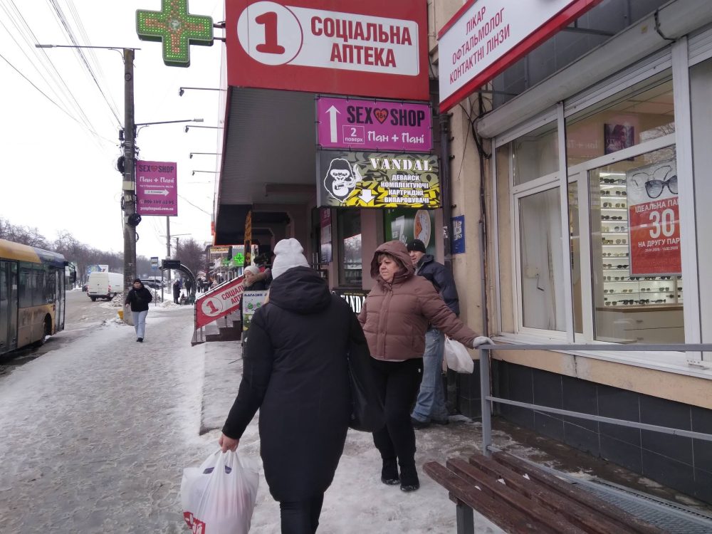 Ходила я нині в декілька установ у справах і по дорозі очі не минали тих вивісок, які закликають нас купувати товари, отримувати послуги перукарів, лікарів, аптекарів, пригощатися кавою, випічкою тощо і тощо. Тож я створила для вас оцей фотовернісаж, раптом ви ніколи не звертали увагу на засилля чужинських назв на наших вулицях.
