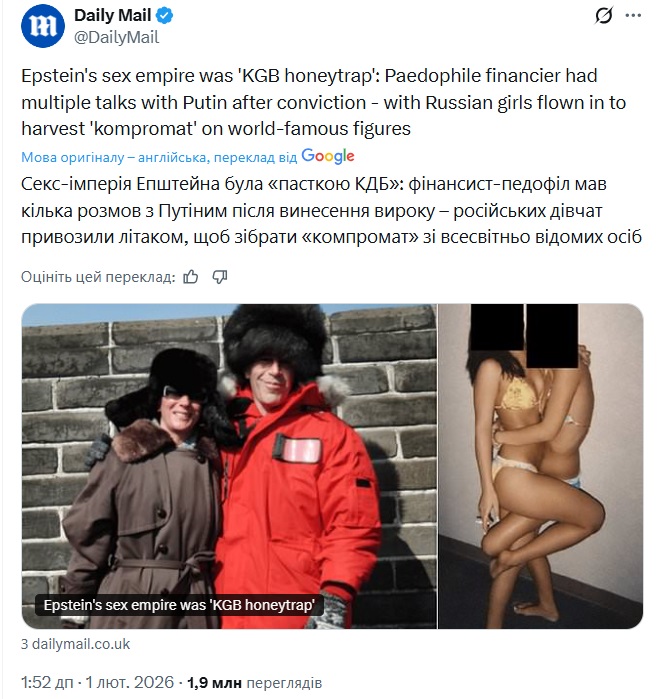 Журналісти підрахували, що у нових документах у справі сексуального злочинця Джеффрі Епштейна є 1056 документів, де згадується росія та її глава володимир путін, та 9629 документів, у яких згадується Москва.