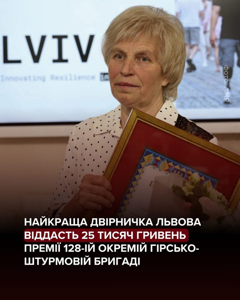 Разом з відзнакою жінка отримала премію в розмірі 25 тисяч гривень. Усю суму вона вирішила передати на потреби 128-ої окремої гірсько-штурмової бригади ЗСУ.