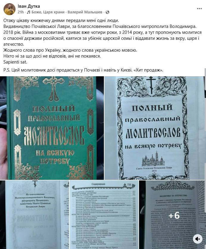 Священник Іван Дутка повідомив, що у виданні 2018 року є молитви «за російську державу» та «воїнів». Книжка, за його словами, досі продається у Почаєві та Києві.