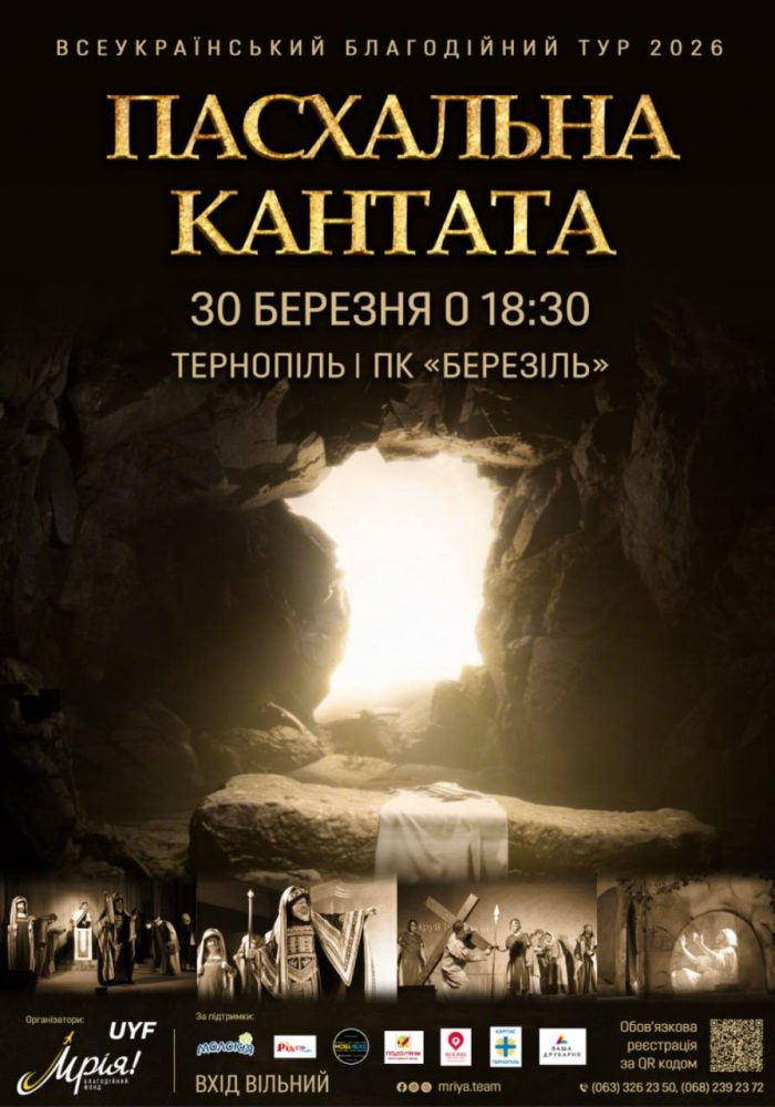 З 25 березня по 12 квітня 2026 року в Україні пройде благодійний тур «Пасхальна кантата», що охопить 17 міст у 11 областях. Цей захід організовано для родин військових, внутрішньо переміщених осіб, тих, хто постраждав від війни, а також для всіх охочих.