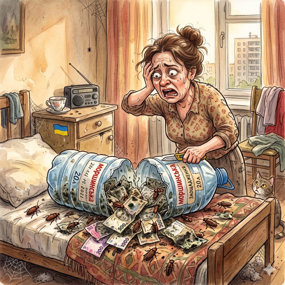Вона взяла порожній 20-літровий бутль з-під води, запхнула його під ліжко… і почала наповнювати купюрами: по двісті, по п’ятсот, по тисячі… Скільки могла відірвати від себе — стільки й ховала.