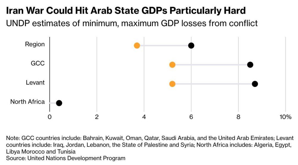 Найбільше постраждають країни Перської затоки та Леванту — там очікується падіння економіки більш ніж на 5% ВВП.