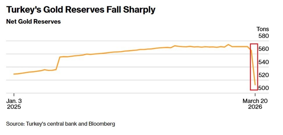 Із 2020 року Туреччина входила до топ-3 покупців золота (разом із Китаєм і Польщею), але тепер змушена розпродавати резерви, щоб стабілізувати економіку на тлі війни з Іраном.