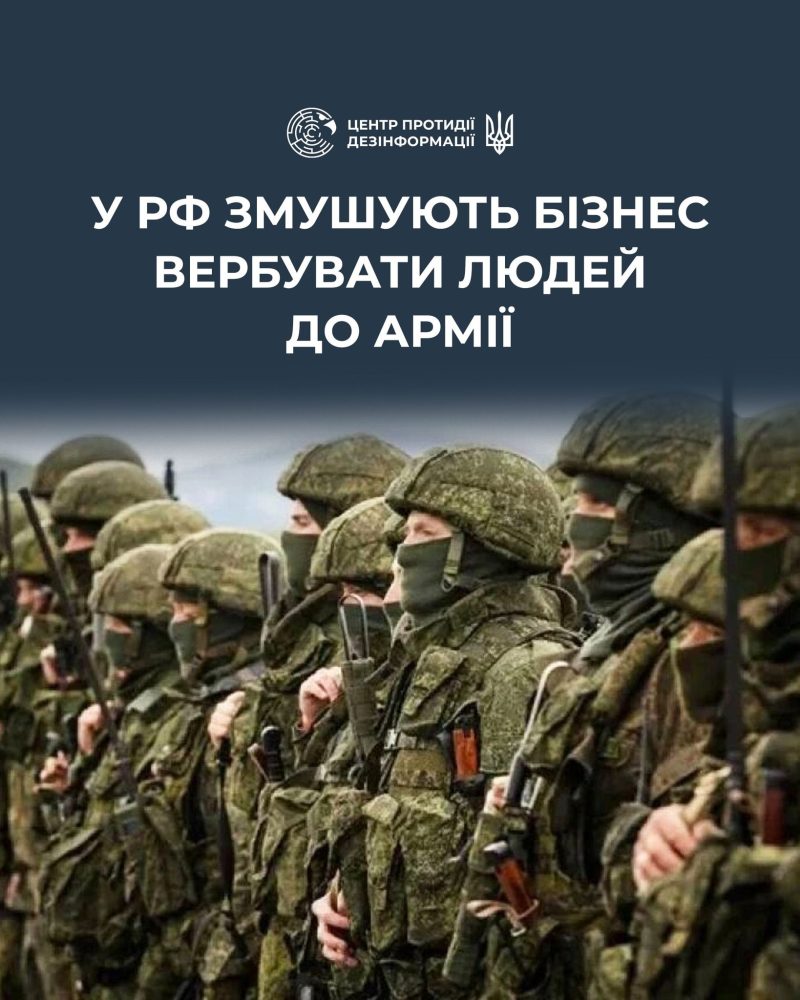 На тлі величезних втрат російська влада вишукує нові способи вербування людей для участі у війні проти України. До рекрутингу починають примусово залучати бізнес.