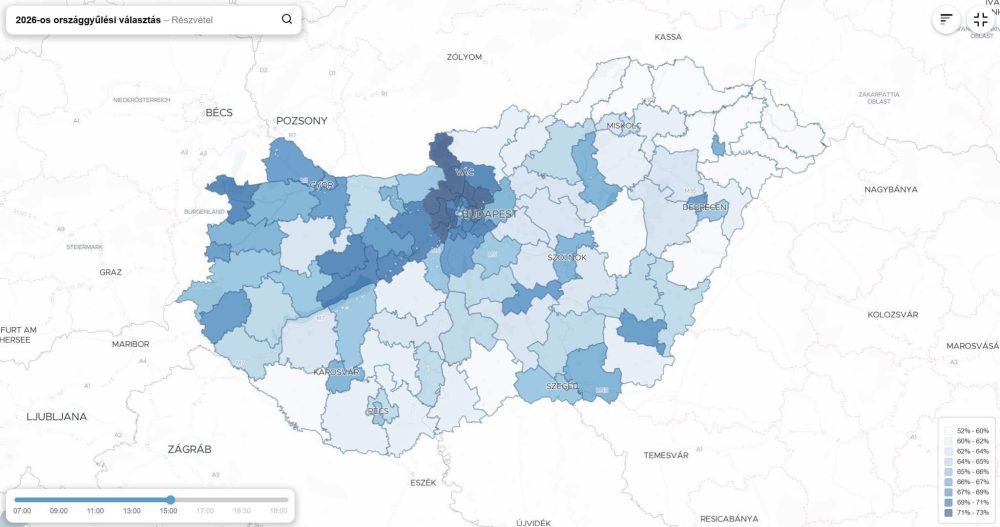 Станом на 13:00 (14:00 за київським часом) понад 54% виборців проголосували на виборах в Угорщині, свідчать офіційні дані. Це більше, ніж 4 млн голосів. У 2022 році явка на цей час була на рівні 40%.